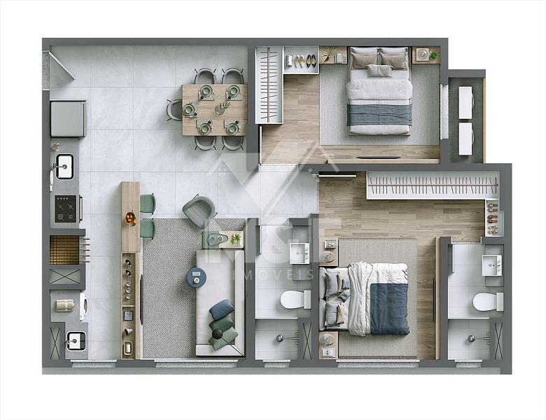 Apartamento de 1 SUÍTE + 1 dormitório com 61,04 m². Feito a partir de um projeto moderno, exclusivo e inteligente.