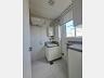 Cozinha com móveis planejados e equipada com geladeira, fogão/forno, máquina de lavar louças, lavação com secadora, ar-condicionado nos quartos.
