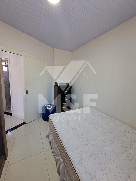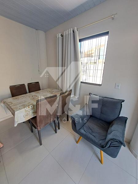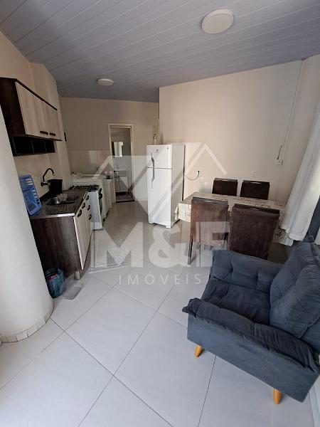 Cozinha equipada com geladeira, fogão, mesa 04 cadeiras, máquina de lavar, quarto com cama de casal e guarda roupas. 01 vaga de garagem descoberta.